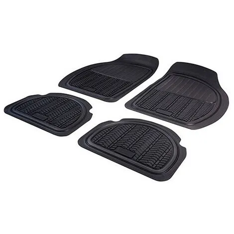 Jeu de 4 tapis caoutchouc noir de type gomme de pneus