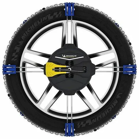 - Jeu de chaînes neige Michelin Fast Grip à montage frontal, tension et centrage automatique, homologuées panneau B26 du code la route.