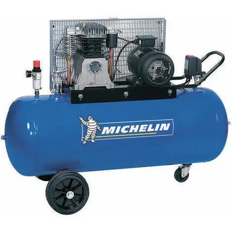 MICHELIN Compresseur 270 litres 5,5CV Livré avec huile prêt à l’emploi, Moteur 5,5HP/380V – Pression maxi: 10 bars réglable – Groupe de compression: Courroie mono-étagé – Débit d’air aspiré: 600 l/min – Débit d’air restitué à 7 bars: 460 l/min – Cylindre: 2 cylindres fonte en ligne – Poids Brut/Net: 155kg / 145kg – Dimensions déballées: 1600*500*1040 cm – Niveau sonore: 97 dB(A) mesurée à 4m – PROVENANCE ITALIE – GARANTIE 2 ANS