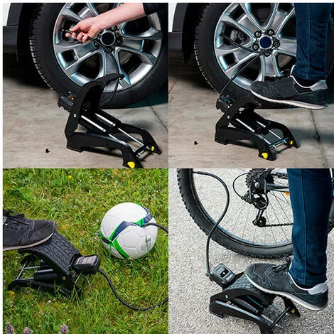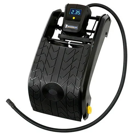- Pompe : Pompe à pied double piston à manomètre digital – 0,05 à 7 bars – Michelin
